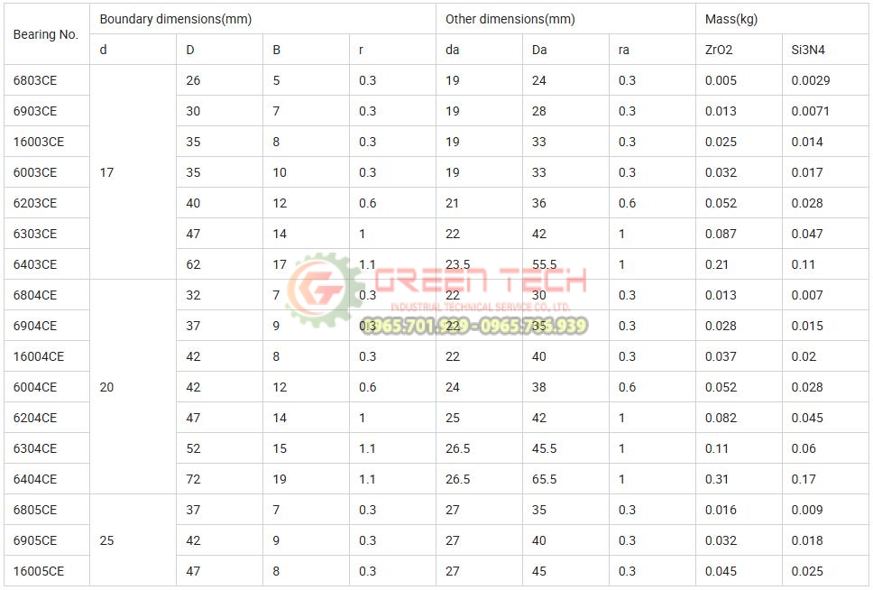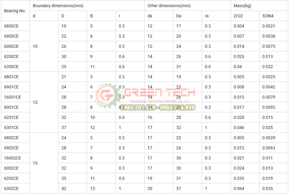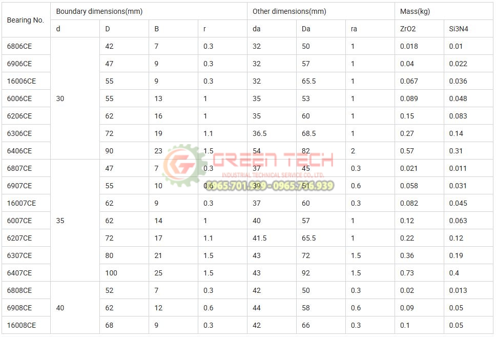 Toàn bộ vòng trong – vòng ngoài – bi đều làm từ ZrO₂, độ cứng cao, chống ăn mòn vượt trội.